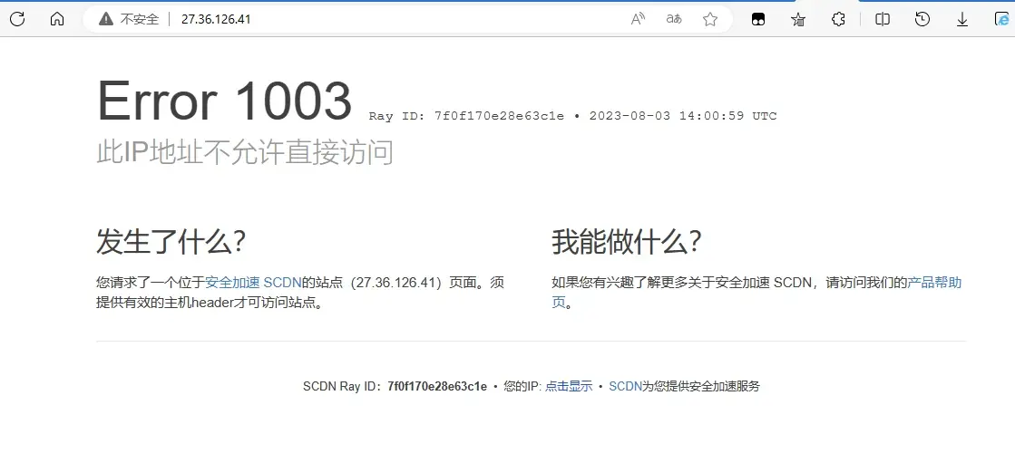 随便复制一个ip在浏览器打开,若提示1003错误,则很有可能是反代了CF的ip。